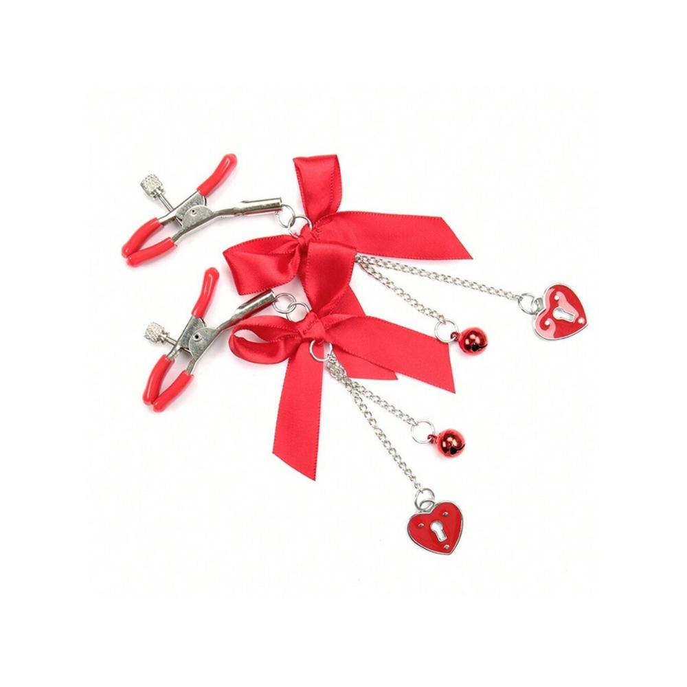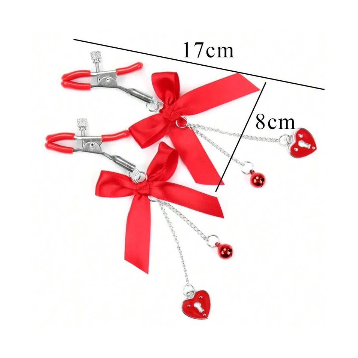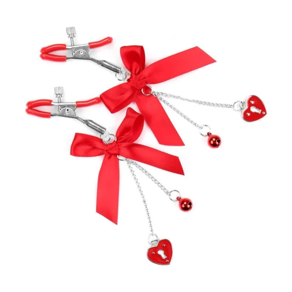 Kırmızı Kurdeleli Kalp Charm Göğüs Uyarıcı Meme Ucu Klipsi Red Ribbon Nipple Clamps