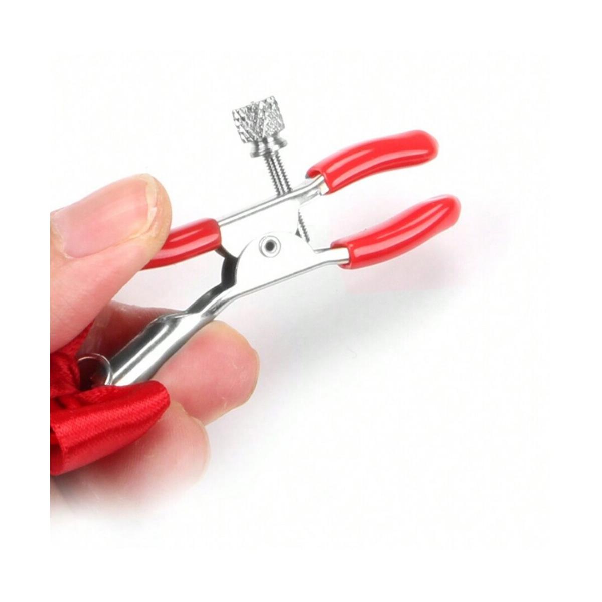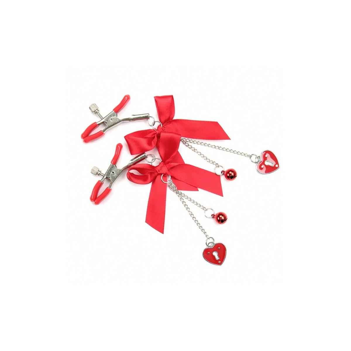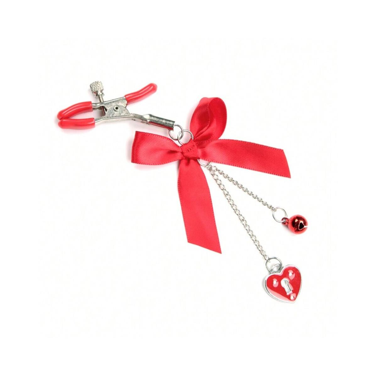 Kırmızı Kurdeleli Kalp Charm Göğüs Uyarıcı Meme Ucu Klipsi Red Ribbon Nipple Clamps