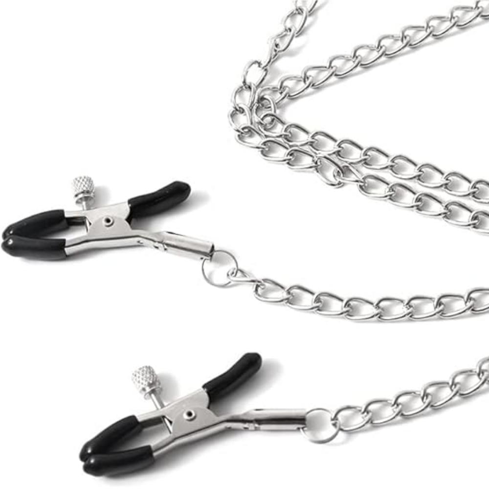 Zincirin 30 cm uzunluğu, vücutta rahatça hareket edebilmenize imkan verirken, aynı zamanda gizemli ve cezbedici bir etki yaratır. Paslanmaz çelik, hem estetik hem de dayanıklılık açısından ideal bir malzeme olup, uzun süreli kullanımlarda dahi parlaklığını ve işlevselliğini korur. Göğüs uyarıcı klipsler, meme uçlarına hassas bir basınç uygulayarak heyecan verici bir uyarım sağlar. Bu, hem görsel hem de duygusal anlamda etkileyici bir deneyim yaratır.
