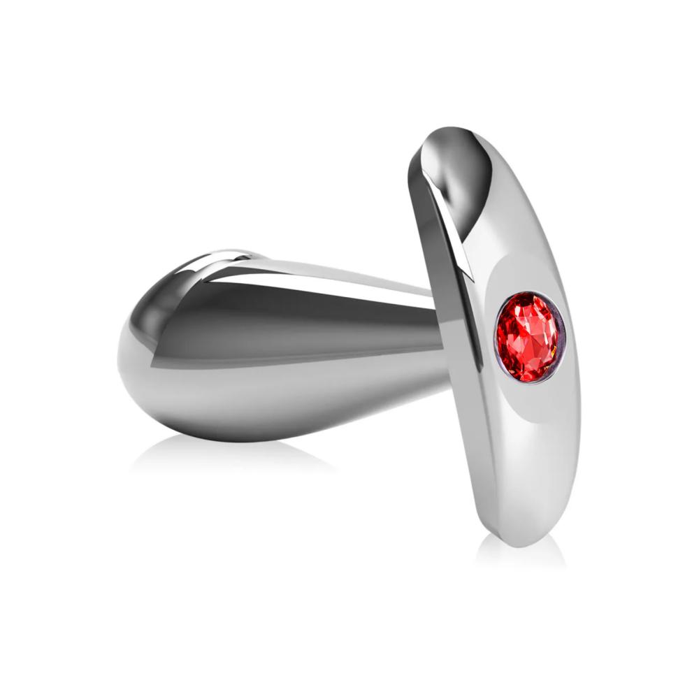 Paslanmaz Çelik Dildo Kırmızı Yuvarlak Mücevher Taşlı Pürüzsüz Silver Metal Anal Butt Plug