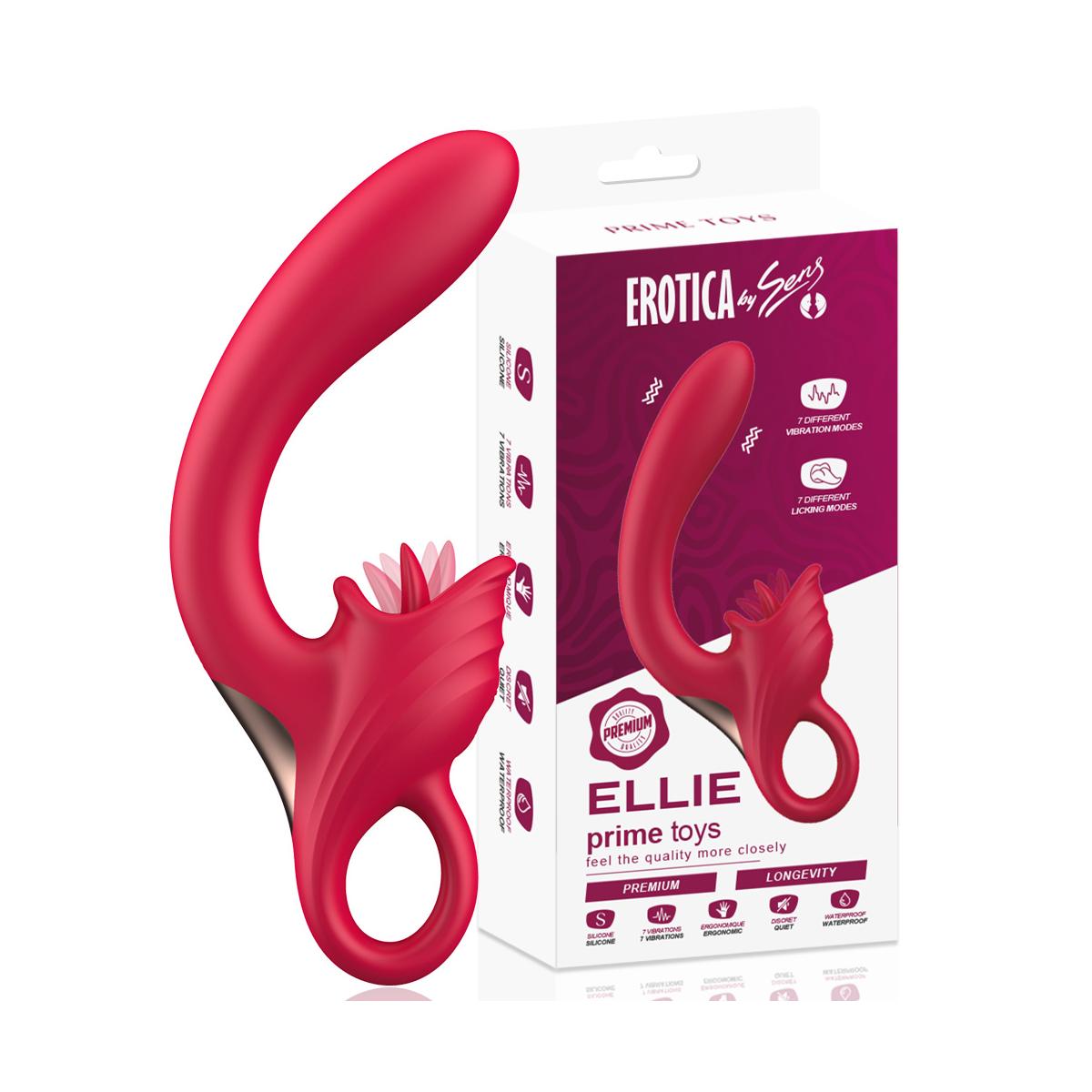 PRIME TOYS Ellie Şarjlı 2 in 1 Klitoris G Nokta Uyarıcı Dil Yalama Hareketli Kavisli Vibratör
