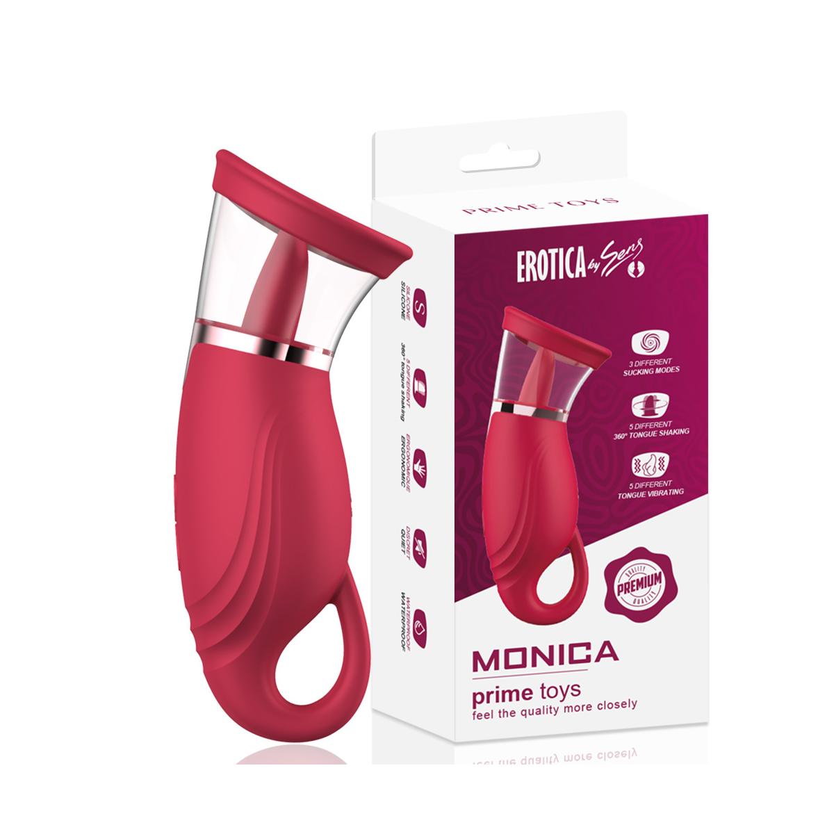 PRIME TOYS Monica Şarjlı Tutma Aparatlı Emiş Titreşim Dil Yalama 3 in 1 Klitoris Uyarıcı Vibratör