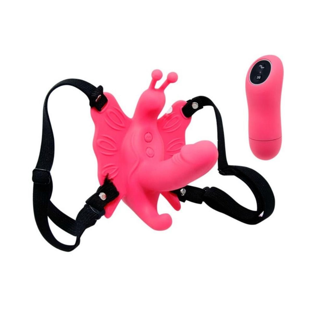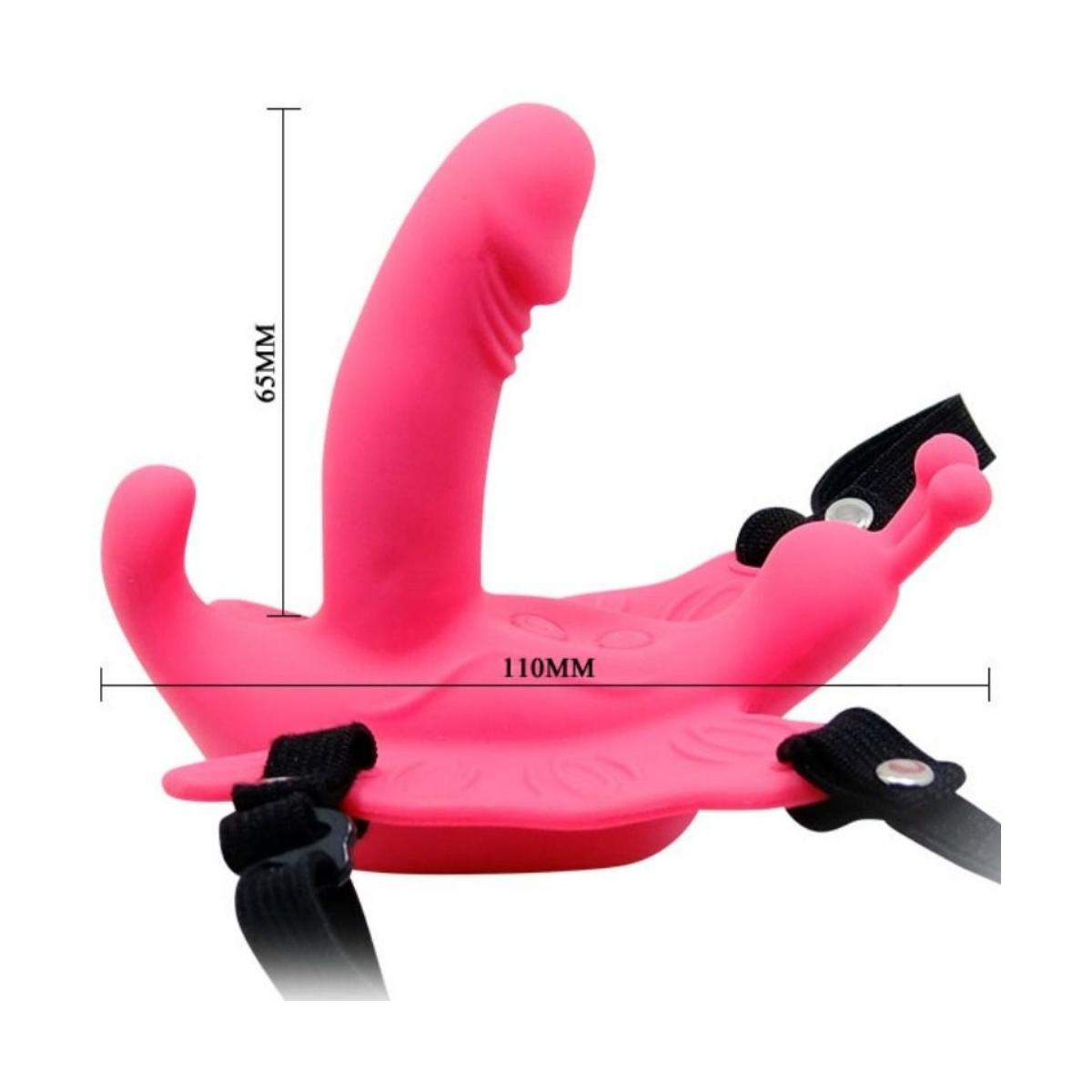 Kelebek şeklinde klitoral stimülatör ve mini penis içeren ayarlanabilir kayış, kablosuz uzaktan kumandayla kontrol edilen ve silikondan yapılmış 30 titreşim modu. Elleriniz serbestken zevkin tadını çıkarın.