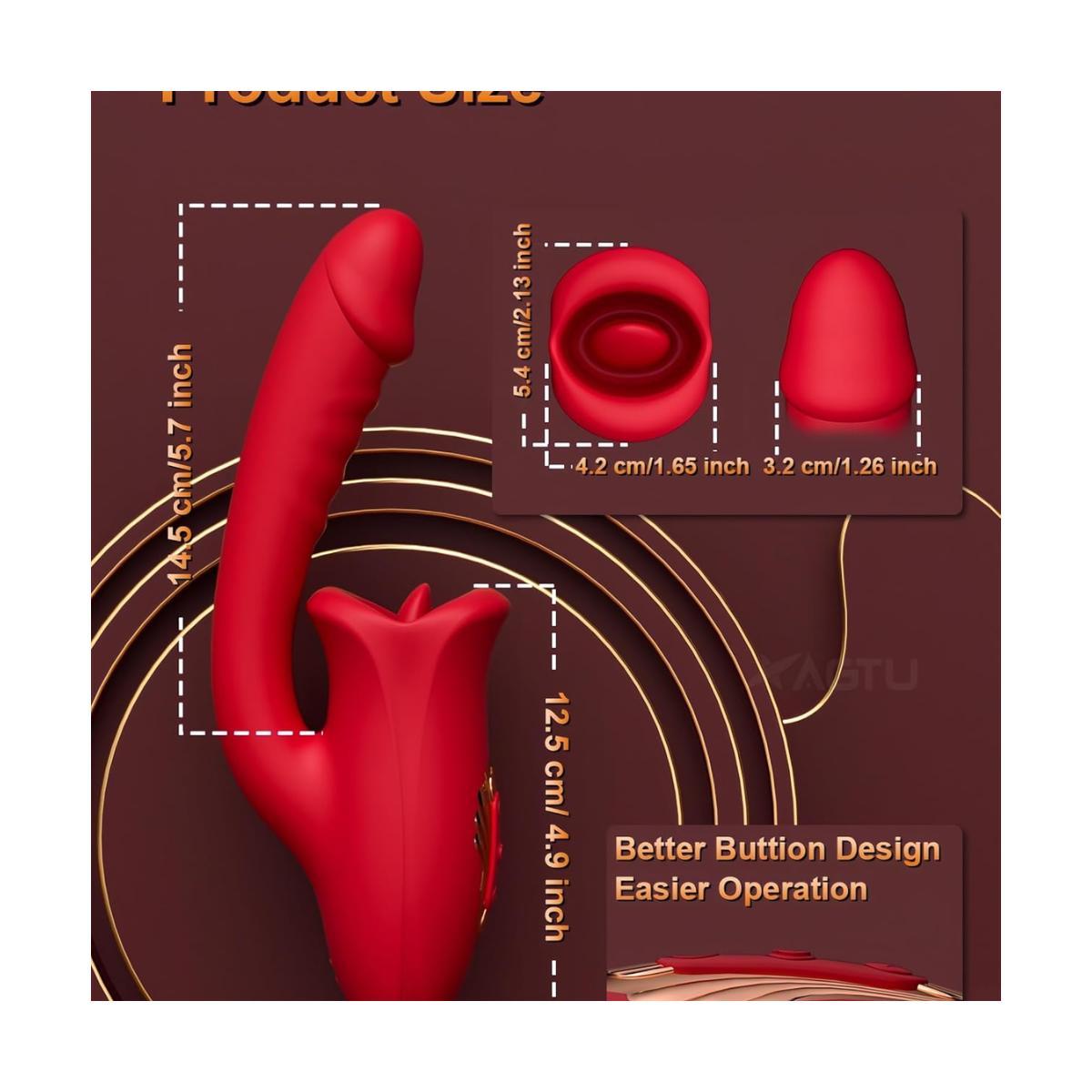 Gerçekçi yalama hareketleri için tasarlanan bu oyuncağın oral seks taklidi oldukça gerçekçidir. Dil şeklindeki klitoris vibratör ve aşağı yukarı dudak hareketi, samimi oral zevkin hislerini taklit ederek her anı inanılmaz derecede gerçekçi hale getirir.