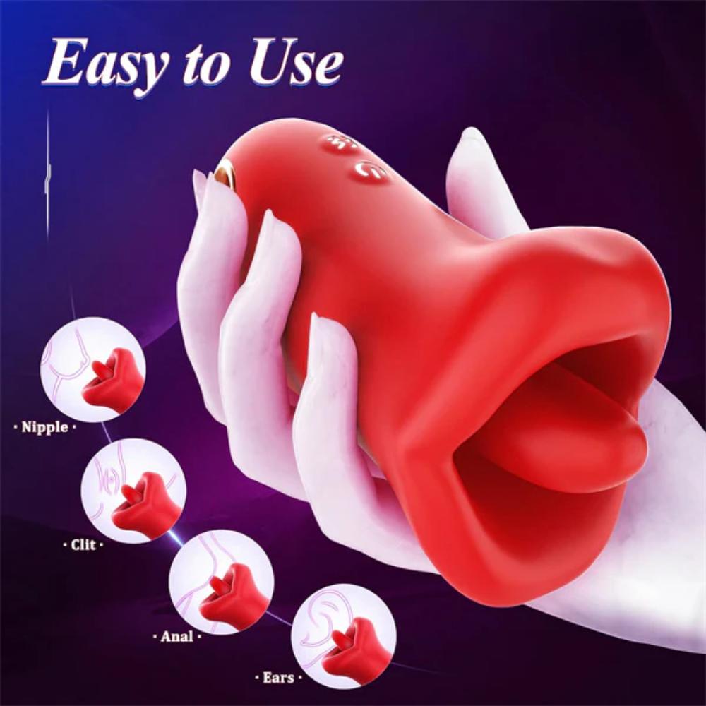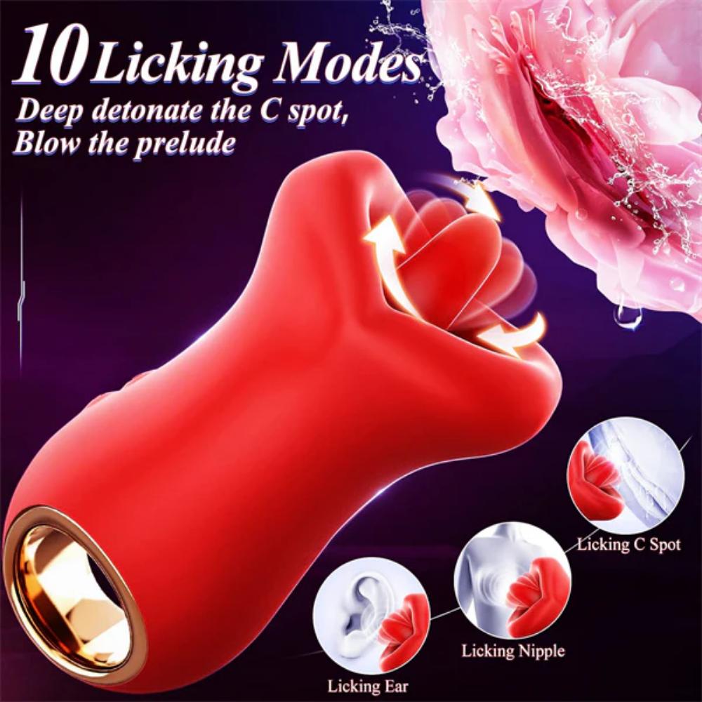 10 Dil yalama hareketi ve titreşim modu + 360° dönme rotasyonu + aşağı yukarı hareketli dudak öpücüğüne sahip yeni vazgeçilmeziniz olacak yalama vibratörümüz 10 frekansla tasarlanmıştır.