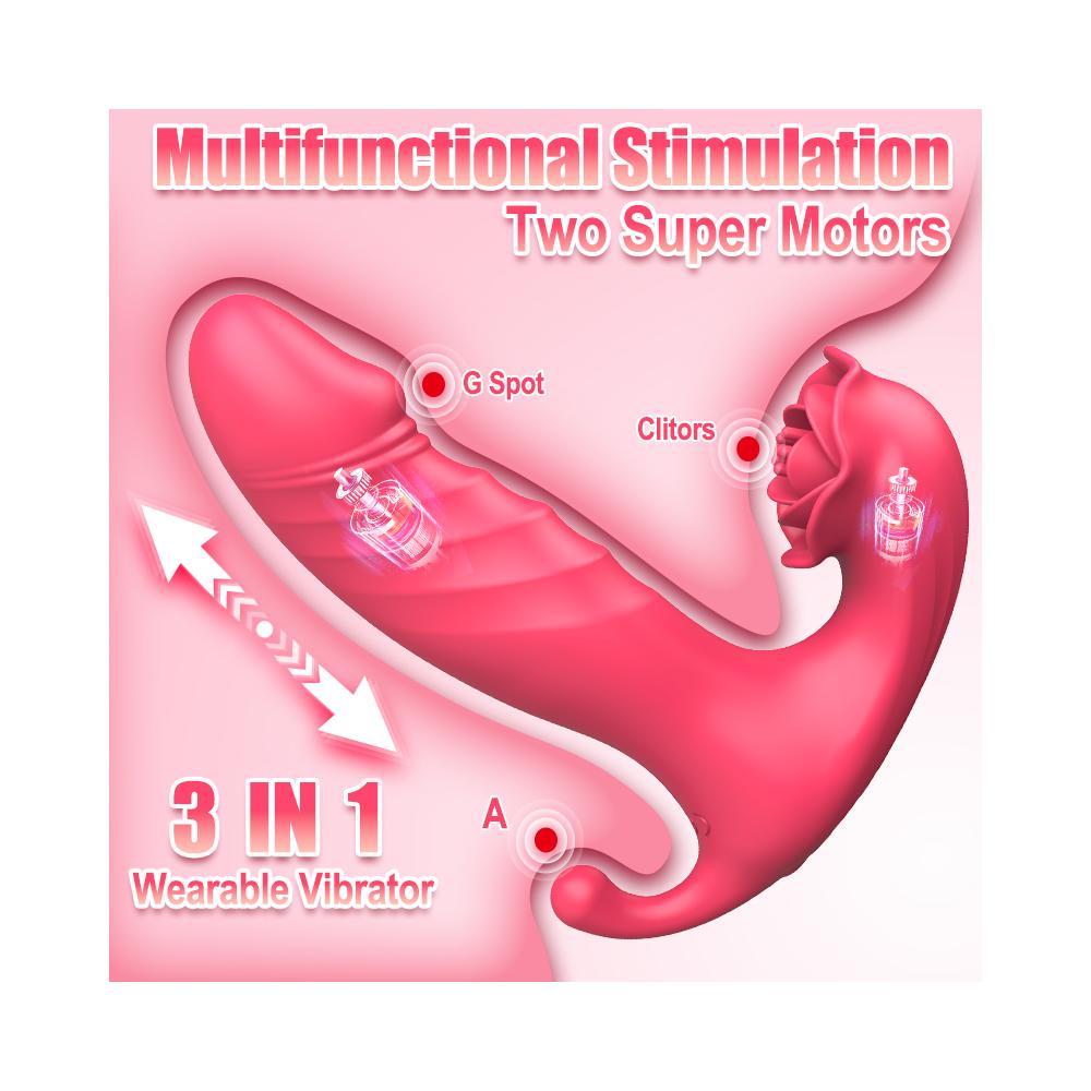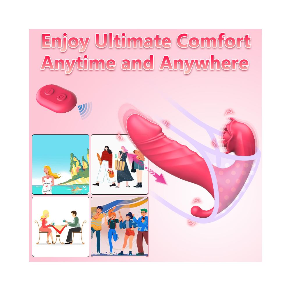 Bu vibratör, 3 farklı bölgeyi aynı anda uyararak çok boyutlu bir haz deneyimi sunar. Vajinal ve anal bölgelerde ileri geri hareket fonksiyonu, klitoral uyarıcı ile birleşerek çok yönlü ve derinlemesine bir tatmin yaratır. Her anı özel kılacak bir uyarım sunar.