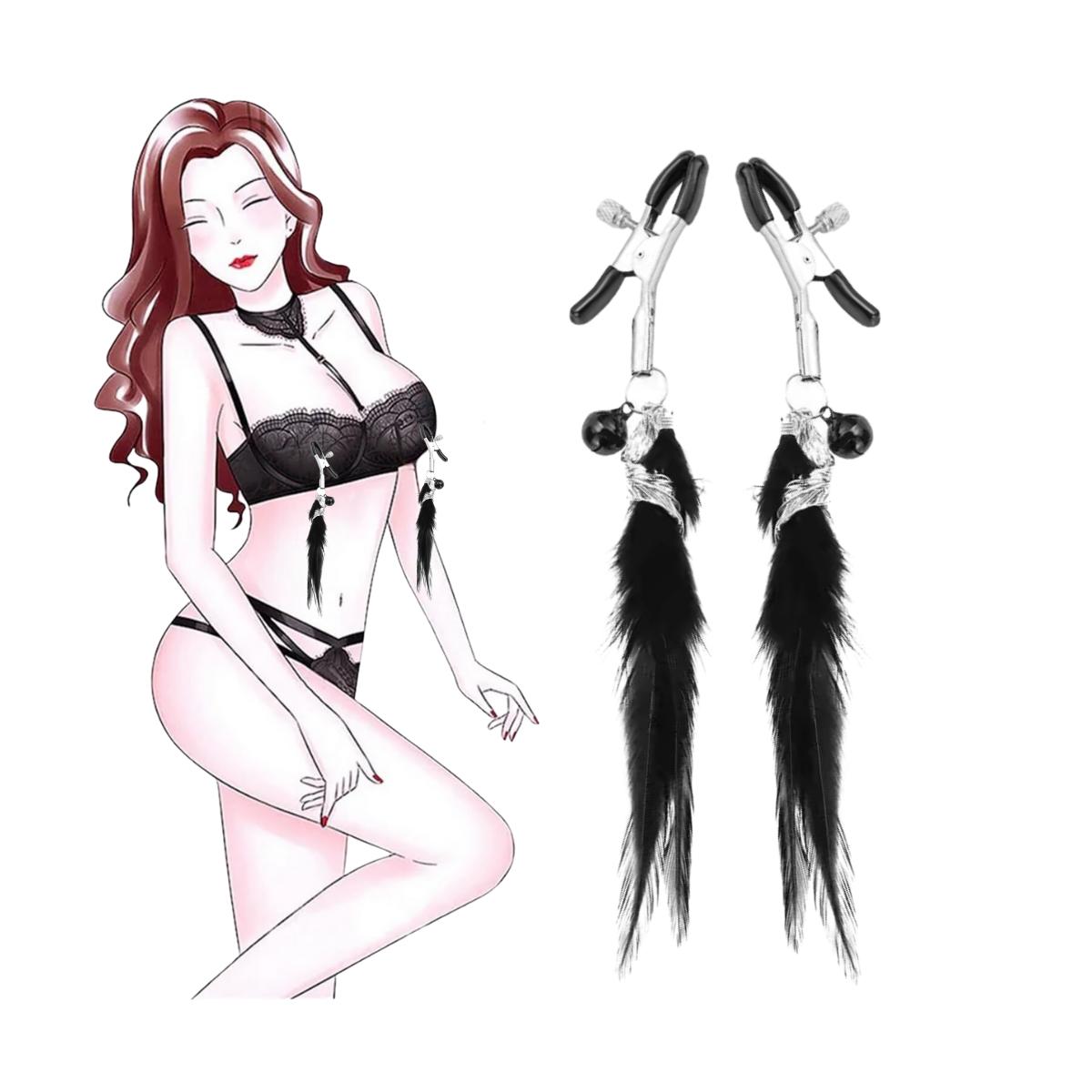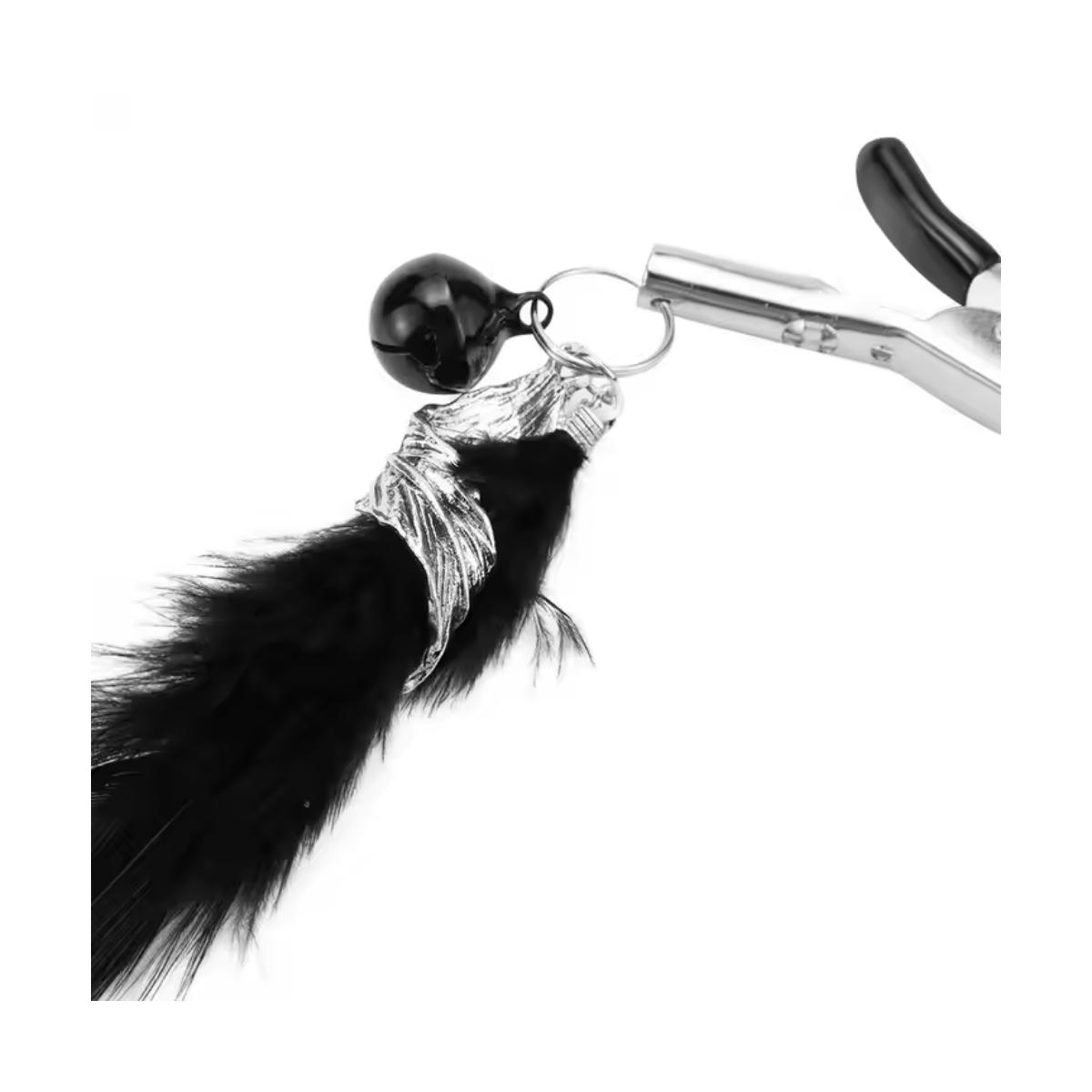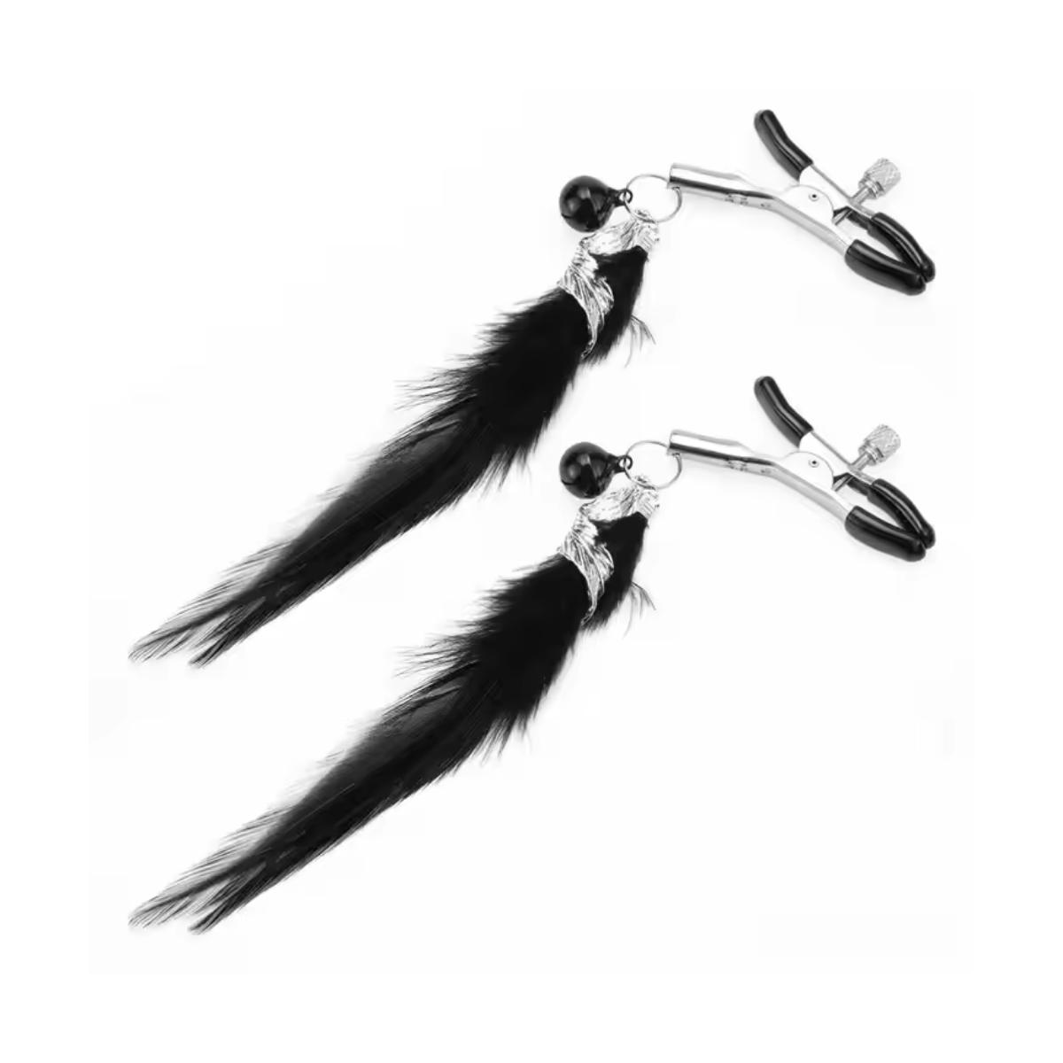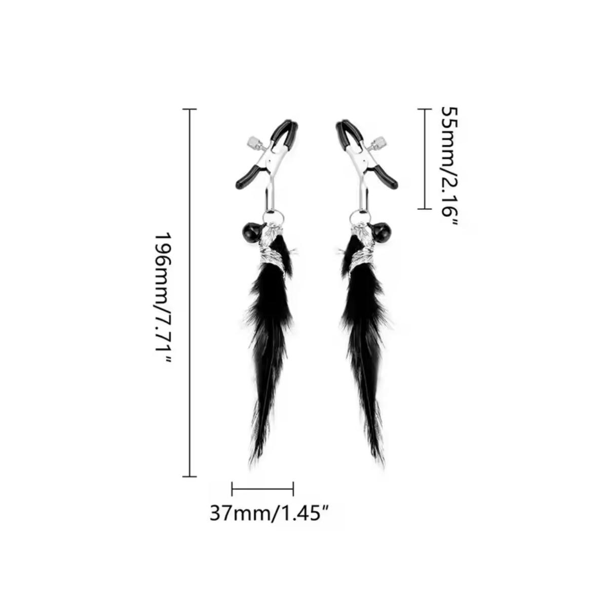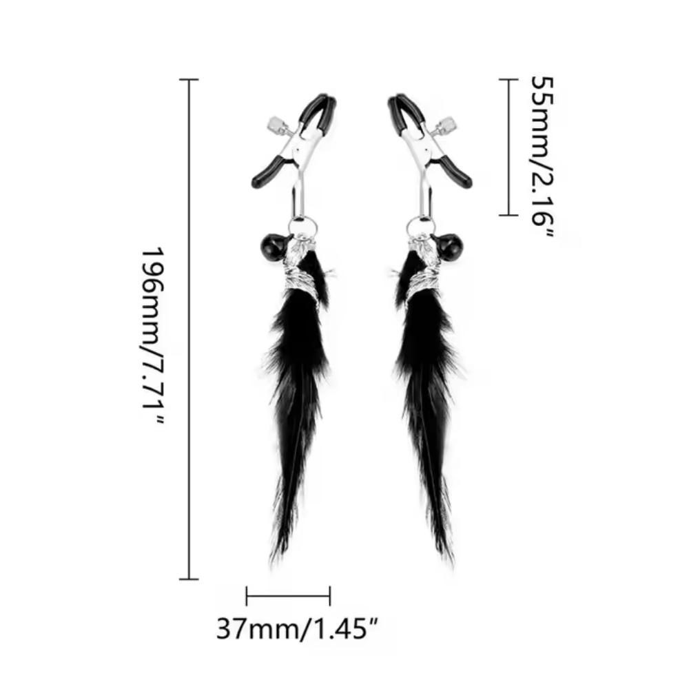 Siyah Kuş Tüylü Metal Tüy Charm Göğüs Uyarıcı Meme Ucu Klipsi Black Feather Nipple Clamps